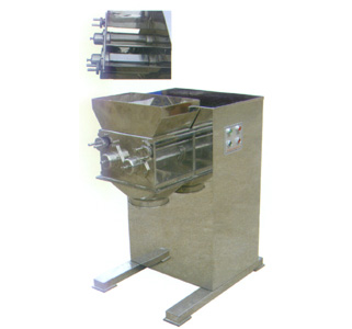 机械传动使两个滚筒同时往复摆动,将物料从筛网中挤出制成颗粒或粉碎制粒或快速制粒,并具有操作简便,产量高,结构简单紧凑,占地面积小等特点。